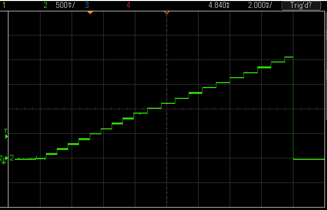 A quick test of a DAC was cobbled together in an hour (including setting everything up). The waveform looks a bit crooked, though. Don't know what went wrong there, but as I said, just a quick and dirty test.